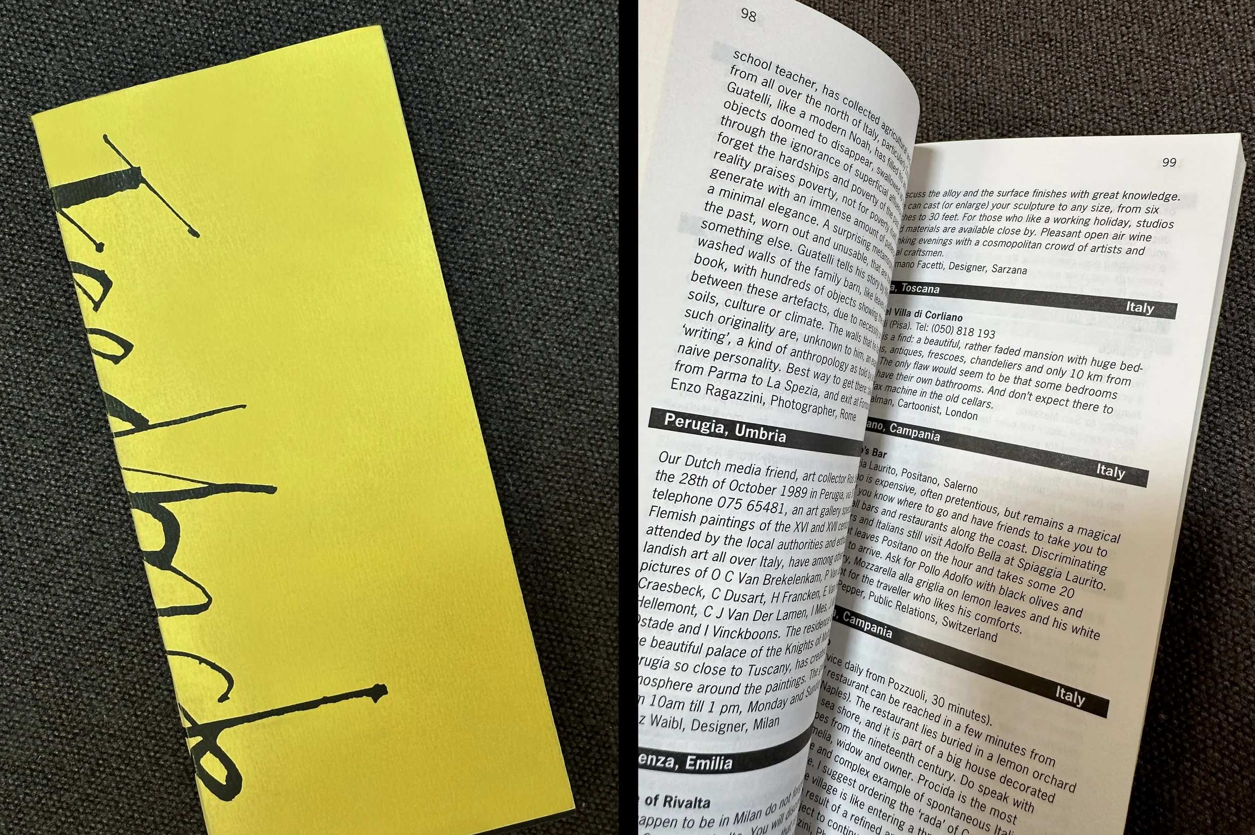 One of my favorite mementos of working at the San Francisco office of Pentagram Design was this guidebook sourced from employees' travels. Their staff travelled the world professionally and personally, and they tapped into that vast resource of experiences by internally publishing this FEEDBACK travel guide.
